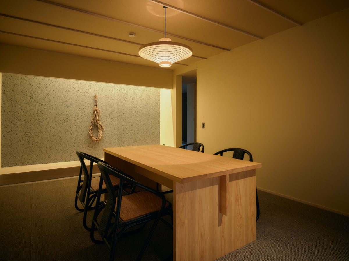 客室は「楮(コウゾ)」「三椏(ミツマタ)」「雁皮(ガンピ)」の3室構成。それぞれの紙の原料にちなんだアートワークが配置され、壁紙や障子、照明器具に至るまで、和紙の質感や光の透け感を最大限に引き出す設計が施されています。伝統的な用途だけでなく、照明や家具、インテリアなどは、これまでと異なる和紙の活用の仕方で表現しており、客室内のあらゆる場所で越前和紙の伝統と進化を感じることができます。